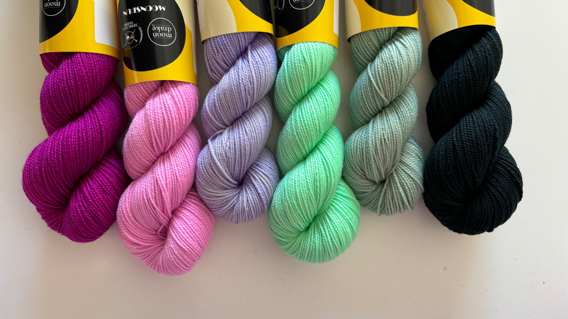 CCs (Sage, Mint, Fairy Godmother, Electric Lilac, Electric Berry): All Sizes = 1 skein each.