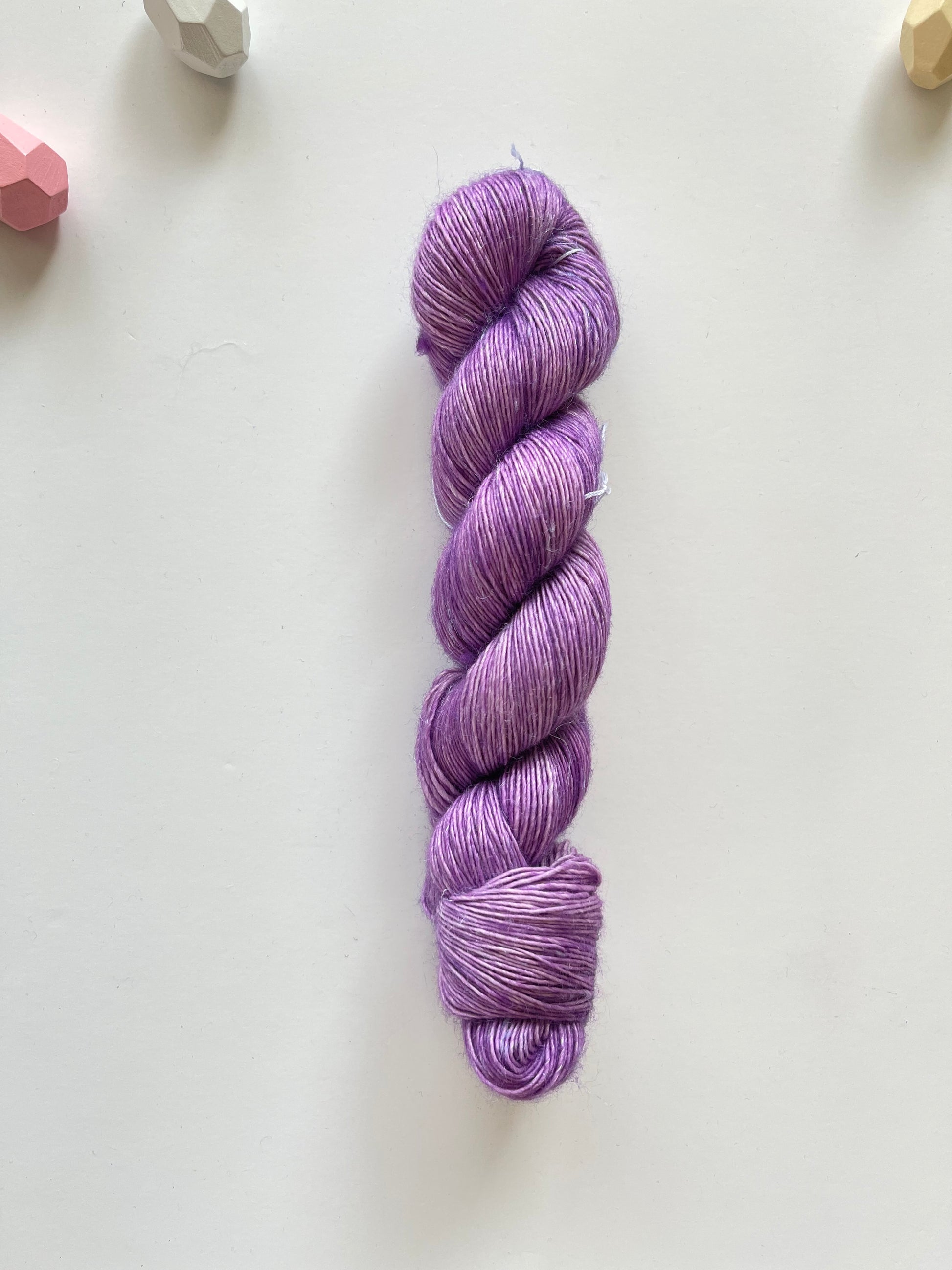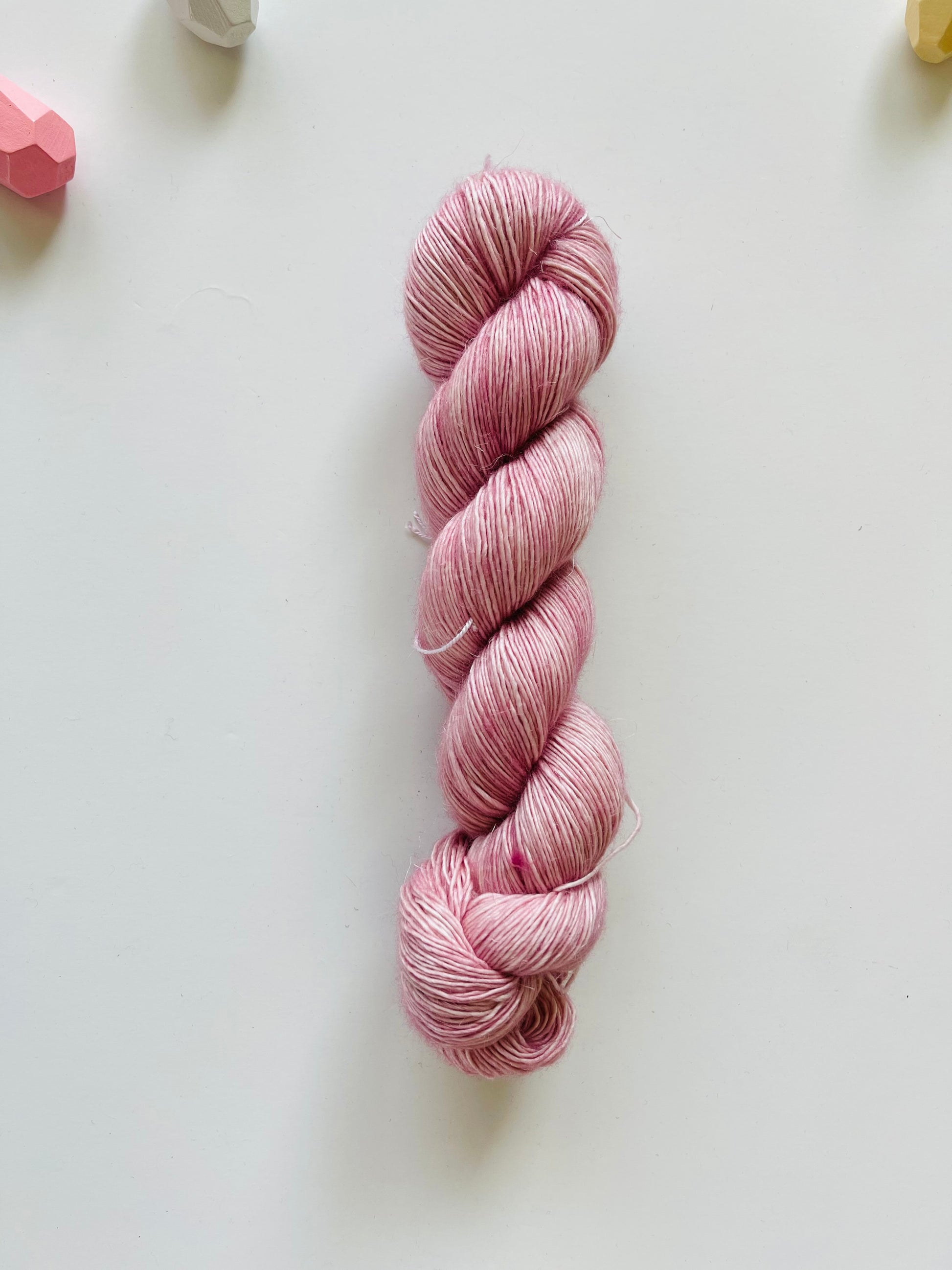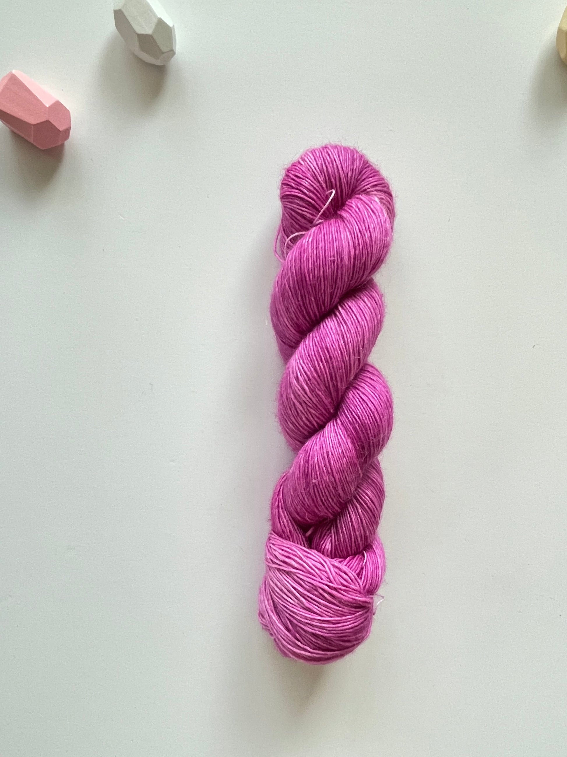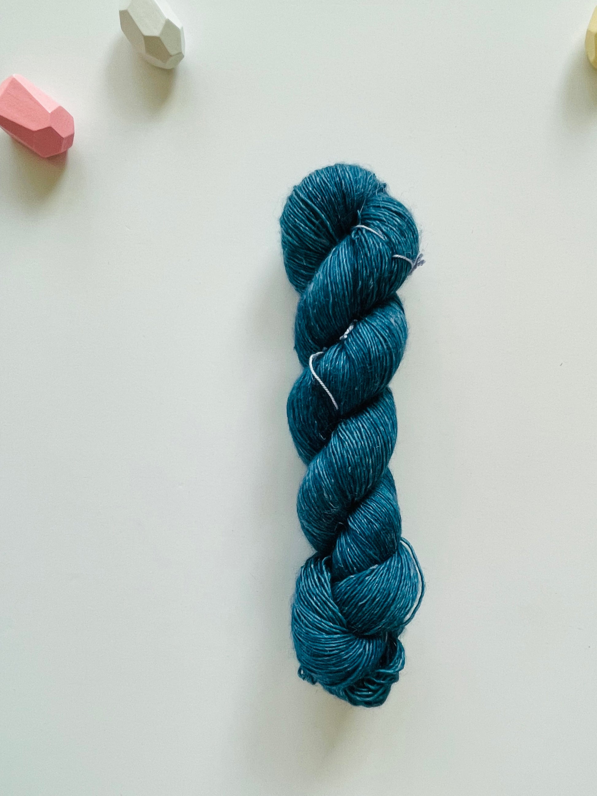 90% Superwash Merino 10% Linen blended, with the softness from Merino and a touch of Linen to make this base unique as it sounds.