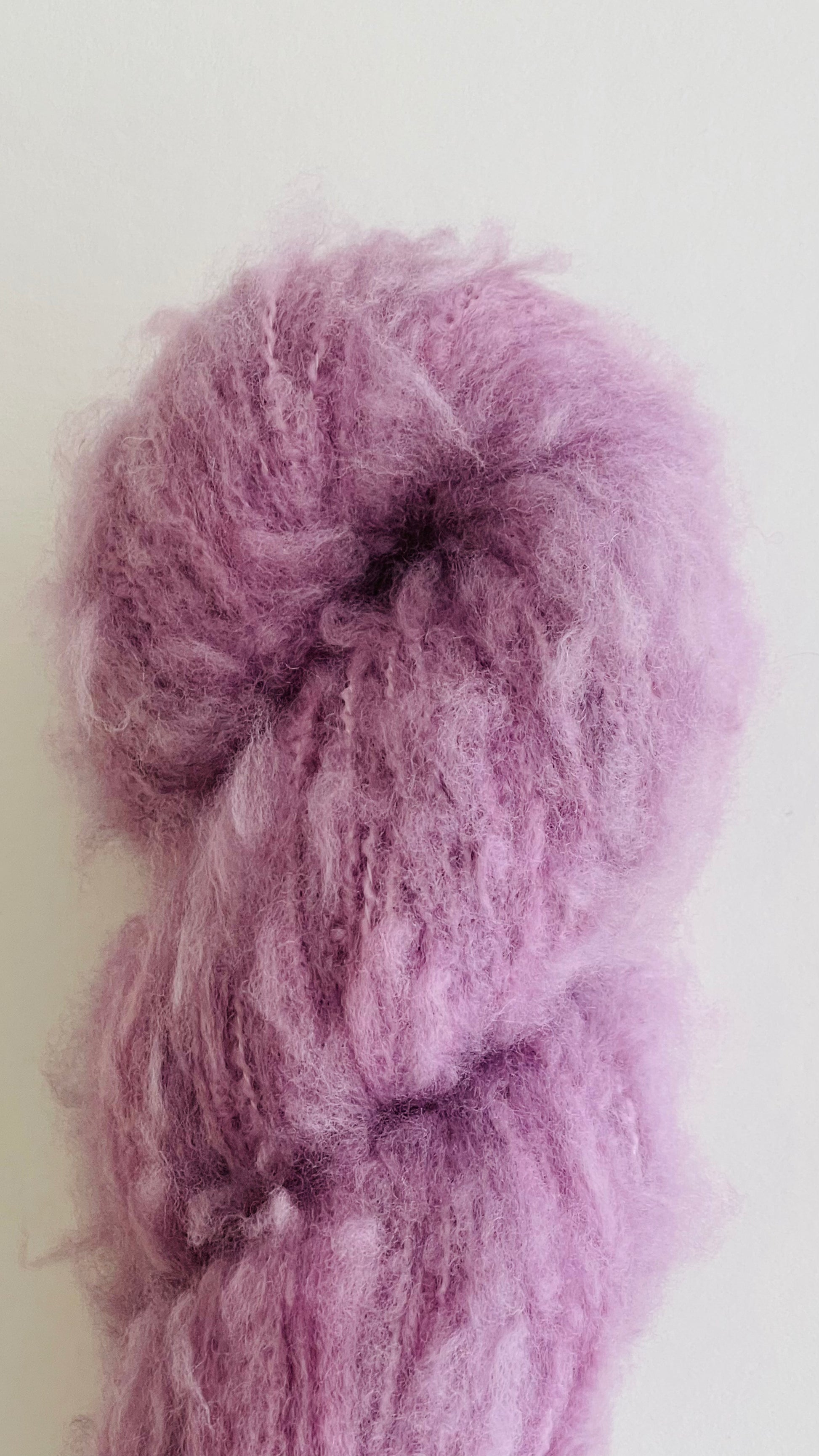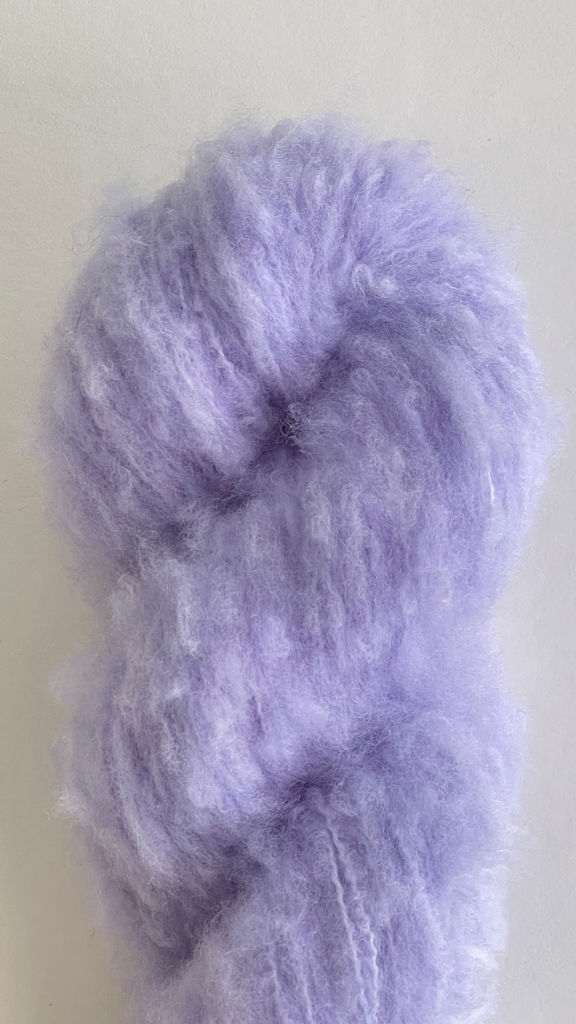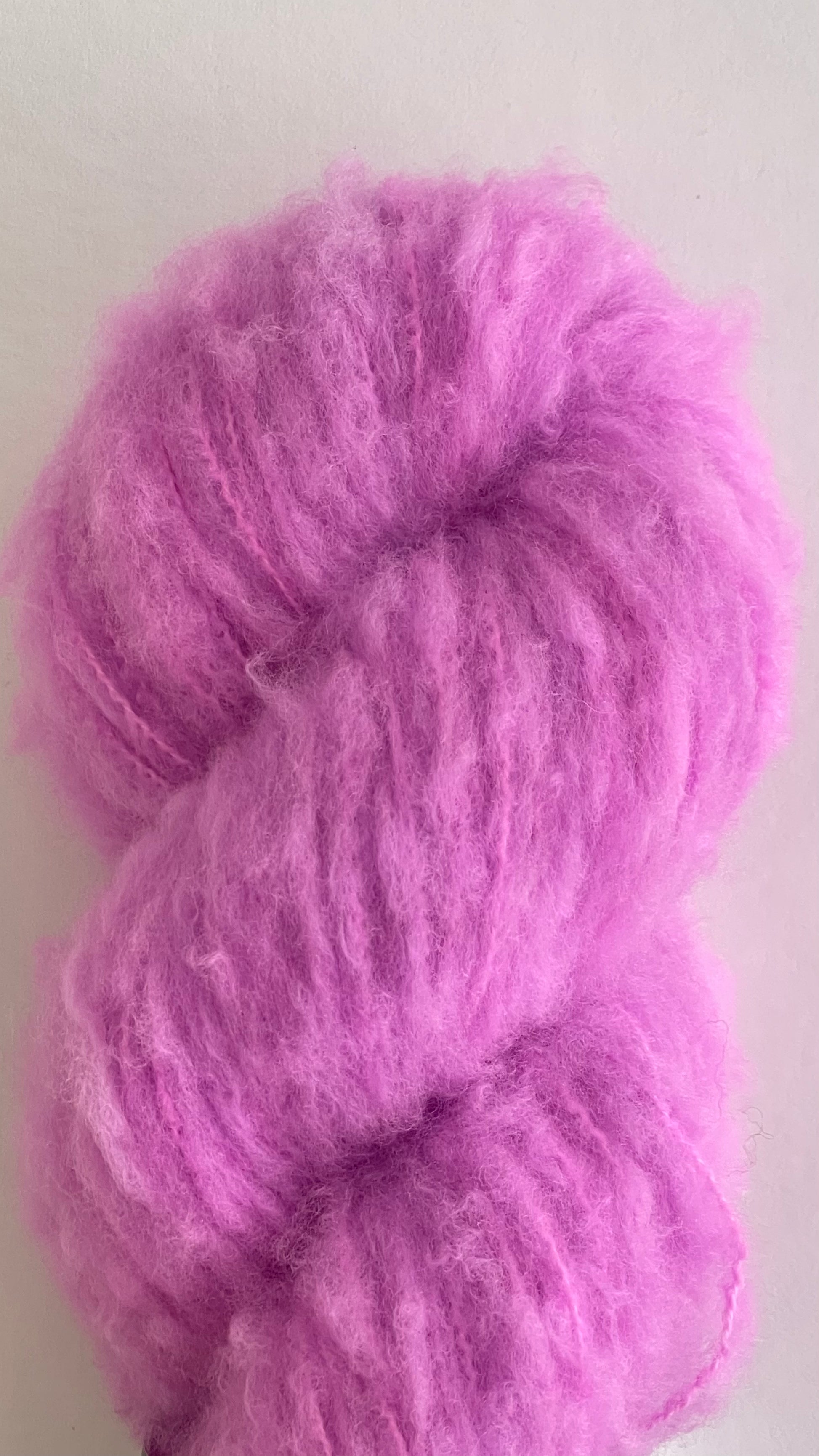 Bulky weight, 50g, 164 yards (150m), 90% Brushed Merino 10% Silk. Recommended needle size 5.5-6.0 mm.